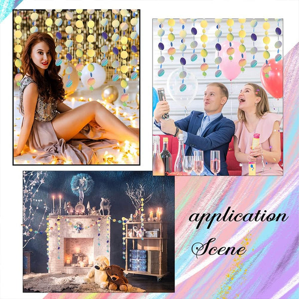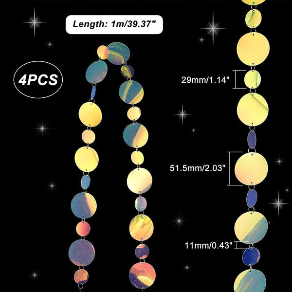 4 Pcs Iridescent Glitter Round Dots 13.12 ft Plastic Circle Dot Streamer