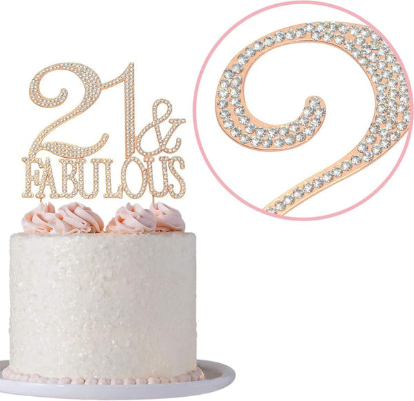 21 and Fabulous Cake Topper - Premium Rose Gold Metal Sparkly Rhinestone Decoration