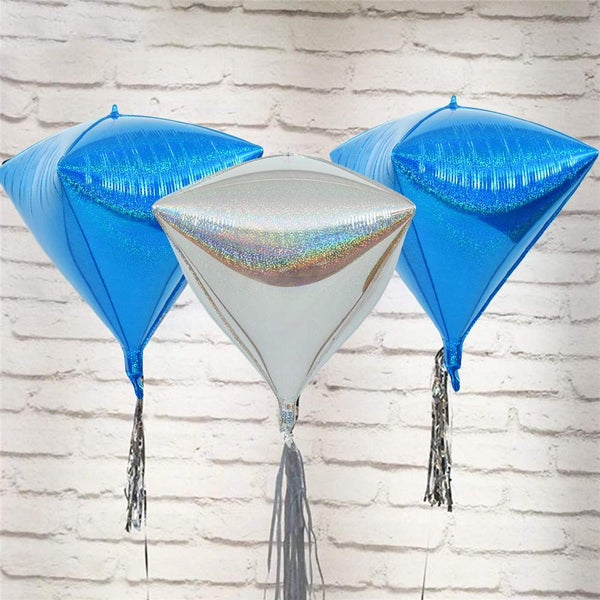 24 Inch Laser Blue Diamond Foil Mylar Balloon (4Pcs)