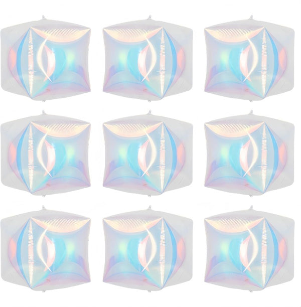 9Pcs Iridescent Clear 4D Cube Balloons 10 Inch