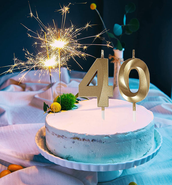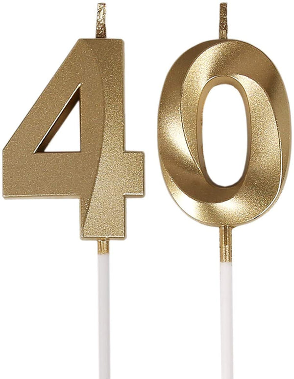 40th Birthday Candles,Gold Number 40 Cake Topper for Birthday Decorat