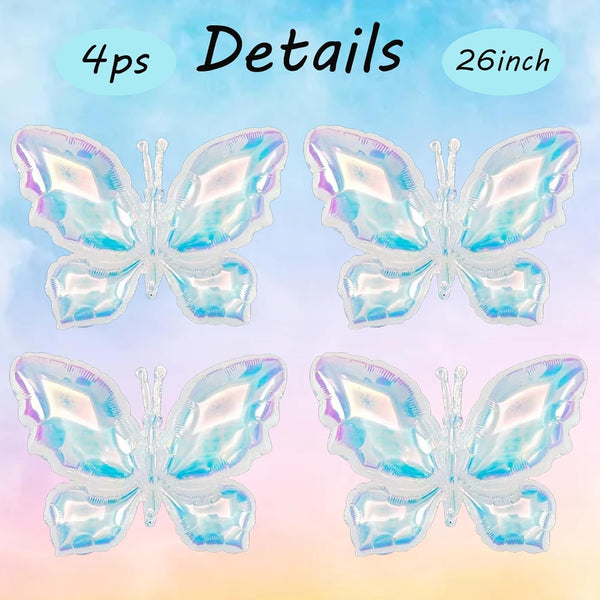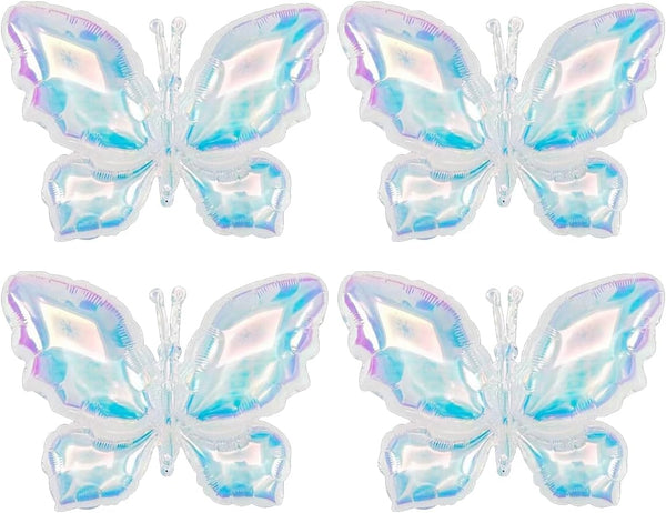 4pcs Iridescents Clear Buttefly Foil Balloons, 26"