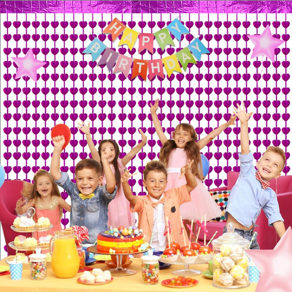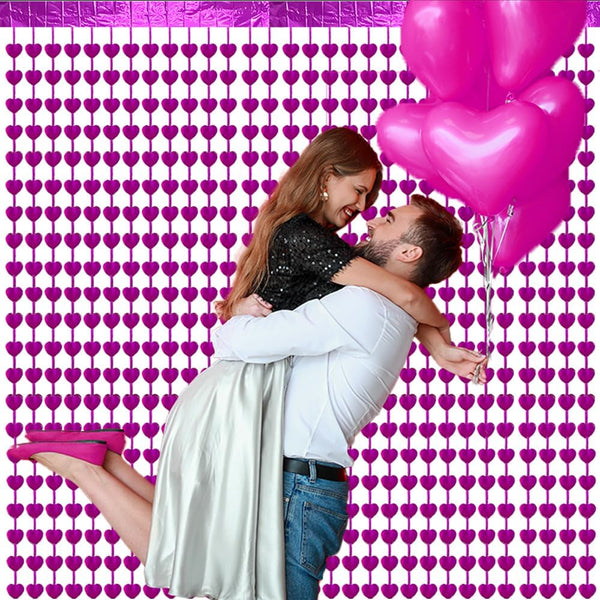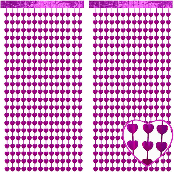 2 Pack 3.3 x 6.6ft Hot Pink Heart Shape Foil Fringe Backdrop