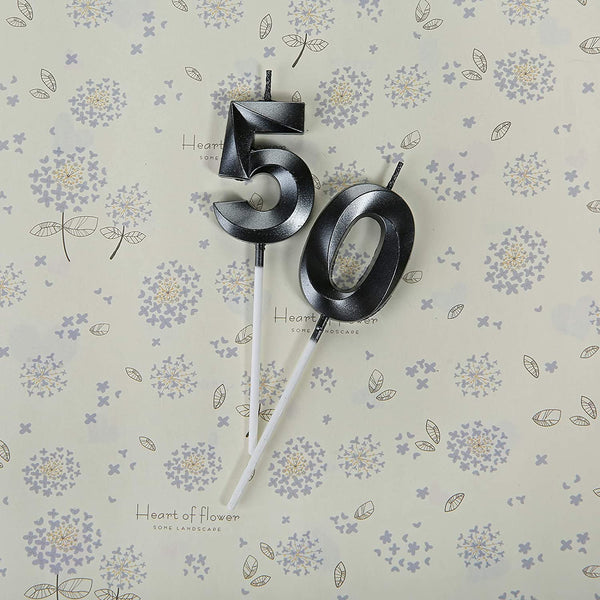 Black 50th Birthday Candles, Number 50 Cake Topper for Men Birthday Decorations Party Decoration