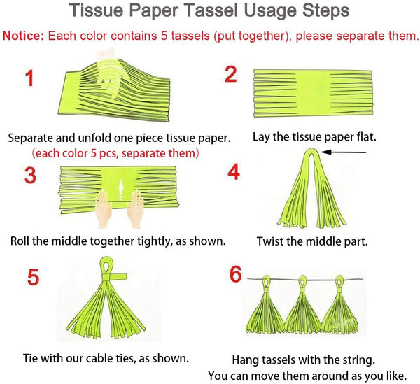 15 tassels (easy ASSEMBLY required) + instruction + cable ties + string,